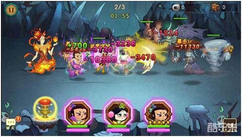 第二小关进去直接平砍怪物,蝴蝶注意骨头龙要喷减能时跳起保护娃娃能量。七娃注意老巫婆举手要放反弹圈时,马上放一次技能破之,之后七娃保持平砍存能量。小蝴蝶反复跳和骨头龙搞拉锯战,小金刚注意时机用阳光普照秒杀台风怪,之后金刚无敌状态。