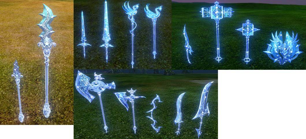 这是一套全新的武器外形,透明的武器外形,在暗夜中泛着莹莹光芒,器身还有星辰闪烁,透出一股壮阔的气息。