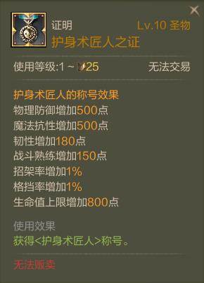 在防具的总星级达到56级后,可以获得专属称号“护身术匠人”,作为苦修护身术之人,佩戴此称号即可享受: