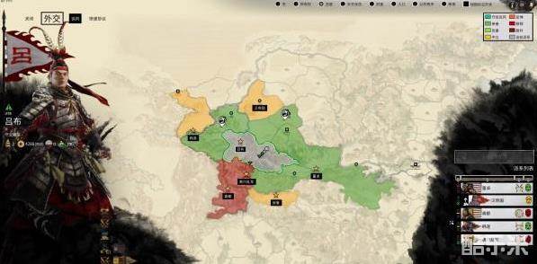 和董卓外交,接受联姻。吕布入赘前妻的外交意见只有-1.6,我这里直接谈了2.3的贸易协定,白捡吕布还有钱赚。