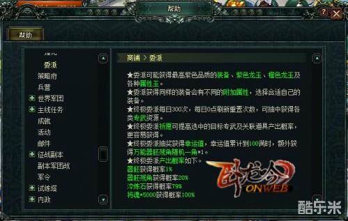 委派系统曾经是玩家获取装备的重要途径,分为银币委派、金币委派。委派可能获得最高紫色品质的装备、紫色龙玉、橙色龙玉以及各种属性玉。那么终极委派会获得什么呢?