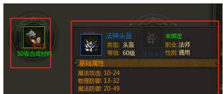 点开装备,就可以看到合成该配件需要的材料,以及该装备的属性介绍,这里是以法神头盔为例给大家参考一下