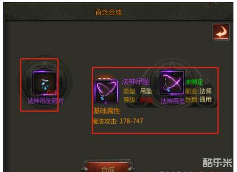 首饰的合成可以为玩家提供魔法属性,点开合成过后可以看到需要的合成的材料碎片以及合成过后的装备基础属性。