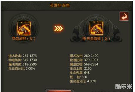 热血装备共分为四项:神·热血装备、圣·热血装备、英雄神·装备、英雄圣·装备