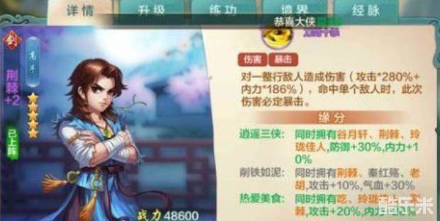 b、推图必备,技能金蟾吐息,杀伤范围大,范围的使对面侠客降低伤害、中毒。