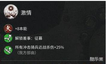 冲锋加成,对于骑兵的加成毋庸置疑。