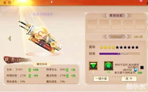 另外,《剑圣无双》的背饰系统也一样是对属性有加成作用的: