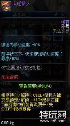 DNF幻游旅人属性介绍,目前玩家可以通过购买东之国度幻游纪礼包开启得到东之国度幻游纪称号礼盒,再次打开就得到幻游旅人称号了。