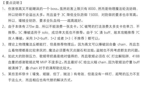 歌姬:带三张物理支,两张b叔模板,两张bug奶,两张奶盾(物理/魔法),加一张解陷阱。5C给出奶盾,6C必须扔出解陷阱。而且鉴于5C清掉buff,治疗量和缓回都没了,感谢和奶盾(除了出手面板9000的姬腿)不太容易奶满,所以队友一起叠出暗chain来比较好。7C不要奶了直接支吧。