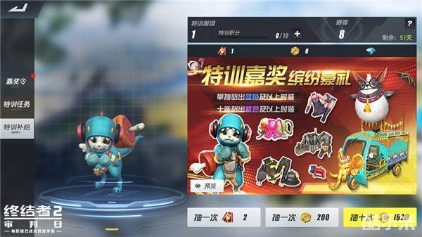 特训补给中,玩家有可能抽取到全新宠物猫恐喵喵、载具皮肤巨象突突车LV1,龙猫降落伞以及章鱼背包等奖励,为你的新赛季增添新动力!