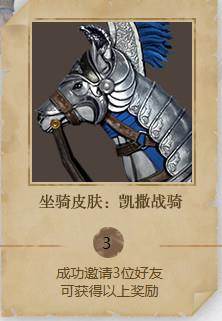什么,还不够?成功邀请三位好友,你将得到威风凛凛的“凯撒战骑”坐骑皮肤,笑傲一众裸马!