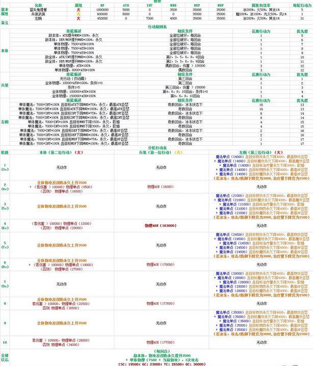 本体除了第1,4,7回合(3c,6c,9c)以外,每回合都会给全体增加3500物攻和双防。