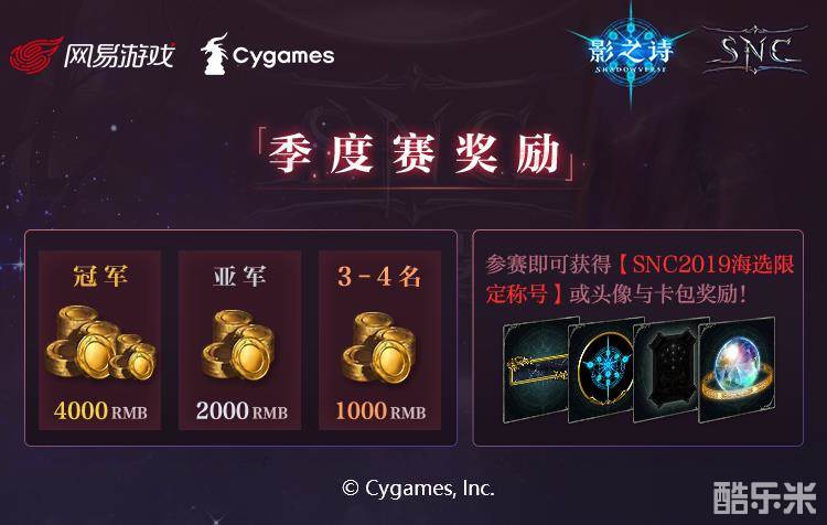 本次海选赛季度赛也为参赛玩家提供了海量奖励,前八名的选手可以获得丰厚的赛事奖金,除此之外,参赛玩家还可获得SNC2019海选限定称号、SNC2019海选限定头像、当前版本卡包、次元石等诸多游戏奖励。季度赛出线的前四名选手可获得参加海选终轮的名额,成功晋级线下决赛将可获得更丰富的赛事奖励,线下赛前四名的选手更可以前往日本参加World Grand Prix世界大赛,与来自世界各地的高手争夺百万美元大奖!