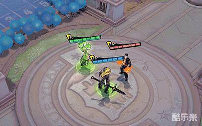 雨师向前扔出青蛙气球们,气球撞击到敌人带着清爽的绿色轨迹向天上弹跳,四叶草形状的纹路标定出范围,骤雨带着星光落下,在地面上打出阵阵涟漪。