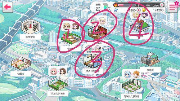 首先是一号地点,右侧那个商店卖的是吃的(加成物品),对应的是颜色加成,也就是你卡片右上角的红蓝黄绿(虽然官方并不这么叫,不过说颜色比较方便)第五个巧克力螺是所有颜色加成,但点开详细信息会发现继承幅度少的可怜(不过前期的话聊胜于无)