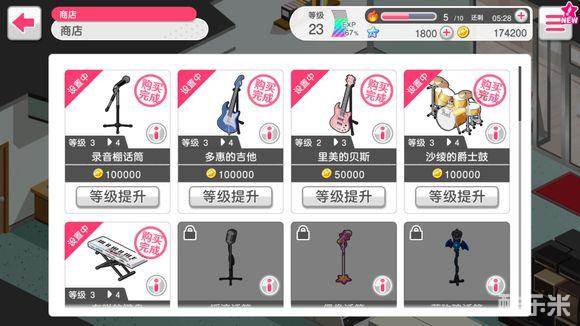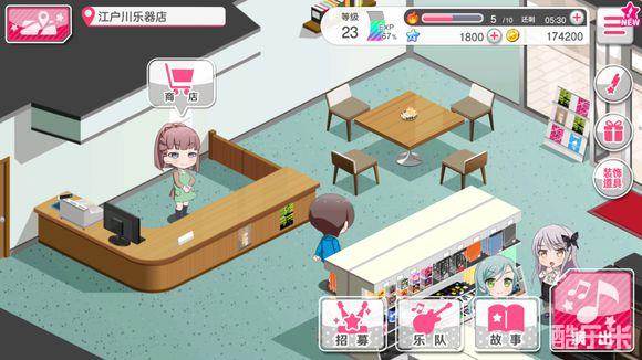 第三个地点乐器店。是卖乐器的(加成物品),对应的也是乐队加成,同上只不过这个是每队5个乐器,上面那个每队只有2个加成物品(但是加成幅度不一样)
