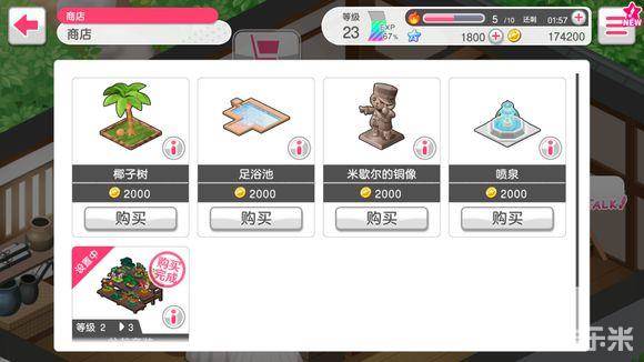然后第四个地点,是卖放在咖啡厅家具的地方(加成物品),对应颜色加成。同第一个地点,不多赘述不过升级物品米歇尔红豆饼(我一直以为是饼干)是活动给的,而且跟排名相关,所以不过第五个盆栽是只用金币就能升级,对应全颜色加成,但幅度很小,对比一下就知道了(前期物品)