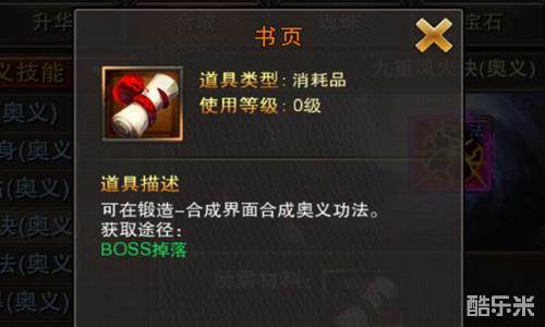 后来,在一次普通的不能再普通的低级BOSS清理行动中,我捡到了一张“书页”,它不是极品装备,也不是各种提升材料,但它的描述词前所未见:可在锻造-合成界面合成奥义功法。奥义功法?但只有拥有50张书页才能进行合成,所以我一直隐忍着积极参与低级BOSS清理行动,控制了顶级BOSS击杀权的大人物们,应该能获得数量更多的书页吧!