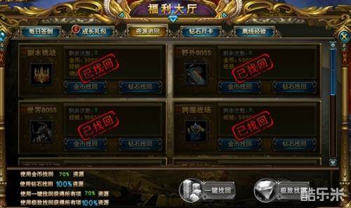 前一天没时间做副本、任务,参加不了活动没关系,资源找回系统可以帮你找回在副本中的收益。