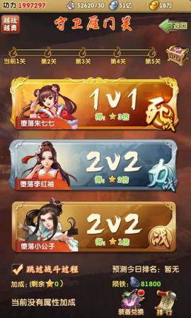 每关有难(死战)、中(力战)、易(战)3组敌人给玩家选择。可根据自身实力及阵容偏向任选1组敌人,打赢即通过了此关 ...