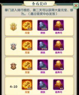 排名奖励:服务器内每日根据玩家当天所打关数进行排行,并在第二天给前一天的最终排名发放元宝奖励: