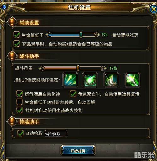 如何设置自动挂机:通过快捷键A或点击主界面下方的挂机设置按钮,就可以打开挂机设置界面。