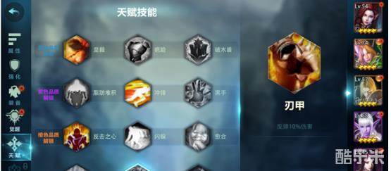 伤害型:坚毅→冲锋→反击之心→刃甲