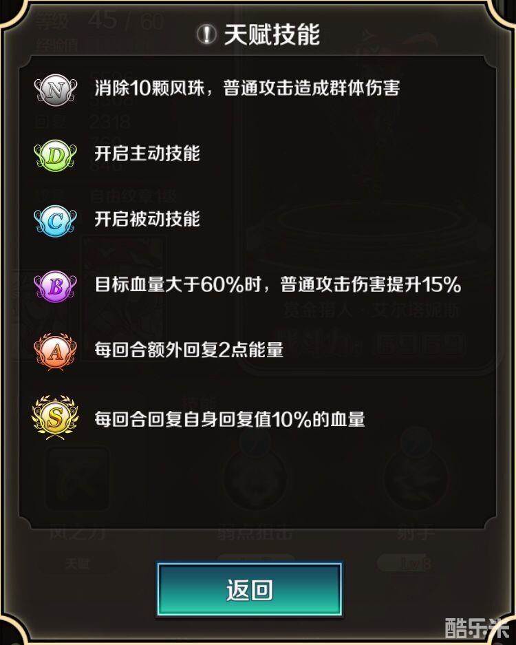 天赋方面也没啥好说的,和罗宾一样,还是靠10颗风珠打AOE伤害吃饭,略逊色于罗宾,就连天赋的名称都一样,CH你还能再懒一点吗??!!风神的天赋神之弓也只是改了一个字!!