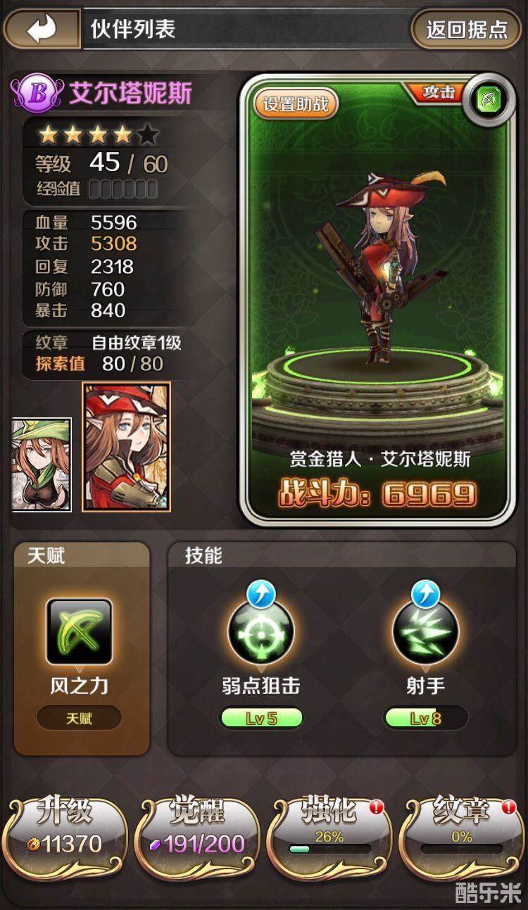 另外在风队中,被动和拉泽尔一样,作用于风队的减能角色,但由于拉泽尔天赋里还有概率减少三点且主动技能对目标能减少防御兼并驱散buff,以致小艾斯的作用并没有拉泽尔来的好。但是拉泽尔的获取难度比较高,培养周期长,反而小艾斯的主动若是配上蕾的破甲或许也有意想不到的想过哦~唯一比较尴尬的是职业冲突,风队里的风神,罗宾都是要培养喂技能的,在技能书吃紧的情况下,小艾斯的培养建议反而没有拉泽尔来的高了~(当然你能爆肝狂刷弓书也可以哒~毕竟这是个收集游戏233)
