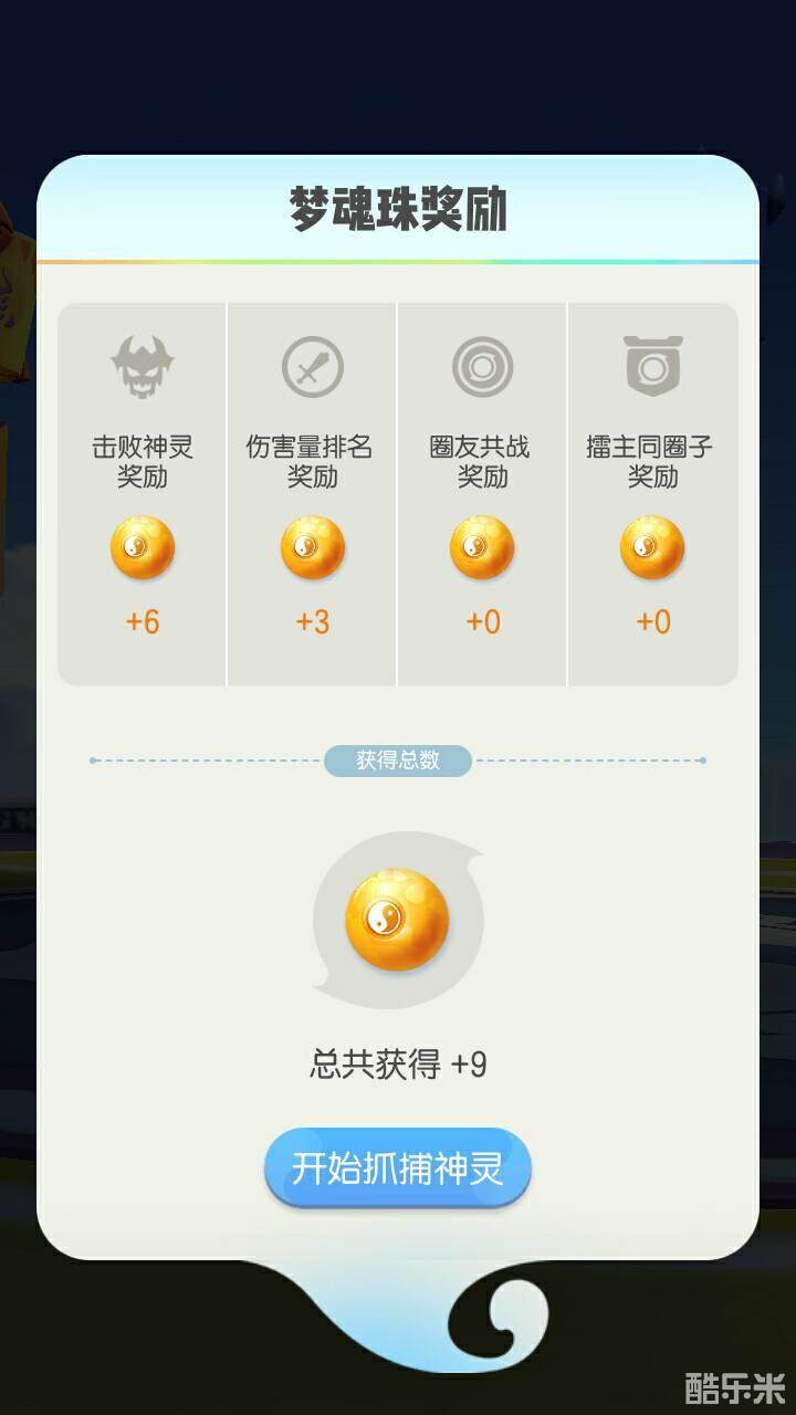 挑战御灵团战获胜时,可以获得无相符印、云纹、经验、虹衫莓等丰富奖励,同时也会有梦魂珠奖励,梦魂珠获得数量与自己在团战中的输出排名有关,满足条件可获得多个梦魂珠,梦魂珠是捕捉句芒的主要封妖道具之一,获胜后点击抓捕神灵即可进入捕捉画面。