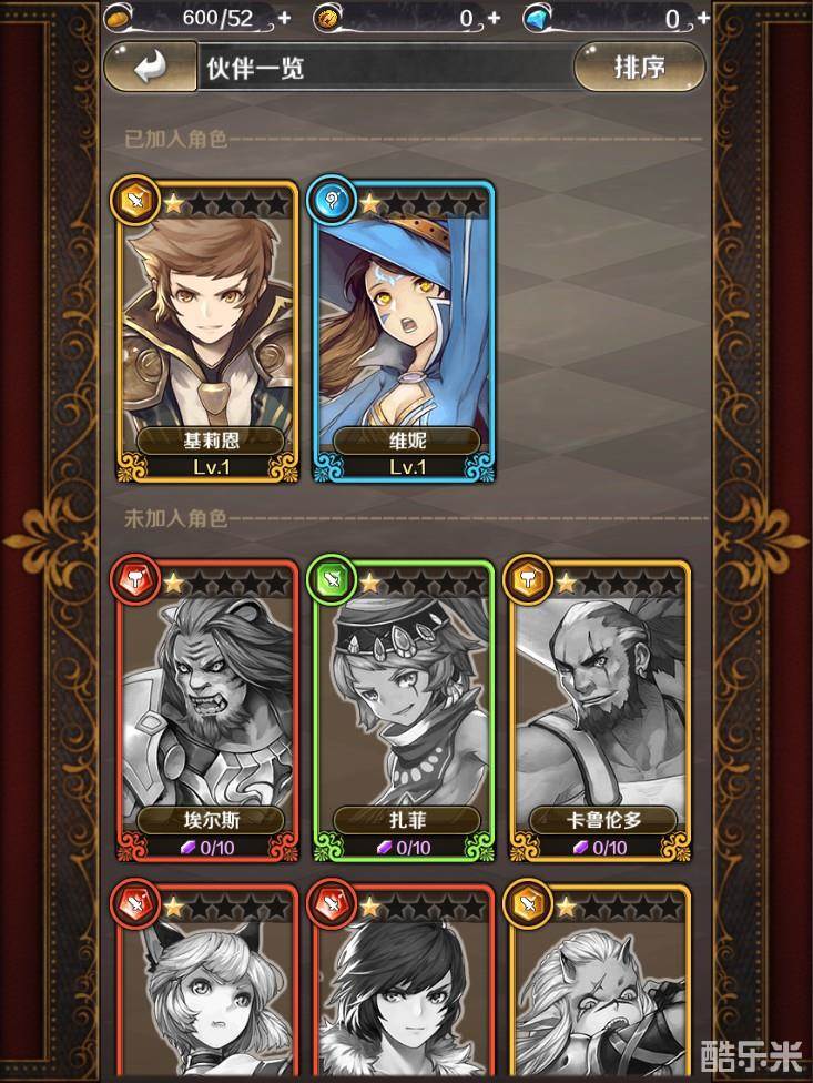 点击首页的【队伍】按钮,再点击【伙伴】按钮即可进入伙伴界面,伙伴界面会显示已加入的伙伴以及未加入的伙伴;