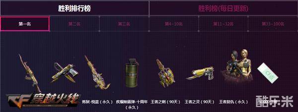 CFer参与枪王排位争取胜利也可获得惊喜福利,加入一局枪王排位即可带走M82A1-青龙(7天)、M4A1-黑龙(7天)、手斧-雷蛇(7天)、高爆手雷-雷蛇(7天)与觉醒宝石1颗。胜利场次从1场至50场均有好礼,最高可获得永久泰坦之拳与王者之石的惊喜奖品。