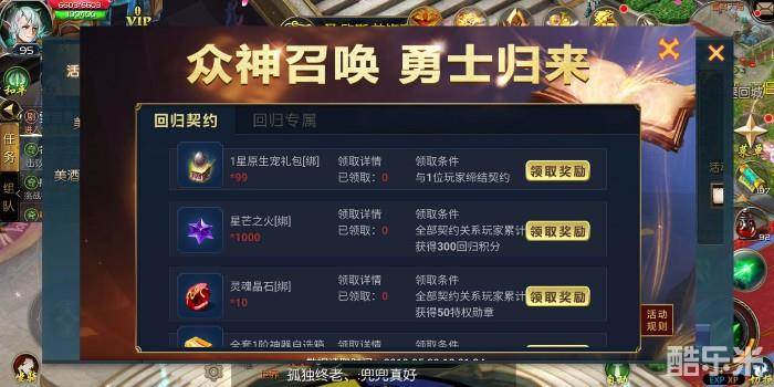 曾经的战友再度并肩作战,丰厚的福利也应当两人一起分享。每当回归玩家参与副本、福利活动,即可获得活跃积分;而充值消费则可获得特权勋章。当活跃积分以及特权勋章累积到一定数量,即可为自己及契约好友赚取包含“霜炼麒麟兽蛋”、“清凉盛夏时装箱”在内的多重壕礼。而作为邀请回归的玩家,则可一次性邀请多位好友,同时累积活跃积分与特权勋章,早日得到壕礼。无论当初兄弟因何原因离开,现在《魔域口袋版》大礼当前,就是号召他们回归的最好时机!