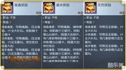当然,只要顺利通关副本,就有通关奖励哟~包括魂晶、侠影、绝世武功等,如若能做到全队生还无一人死亡,还有额外的无伤奖励!
