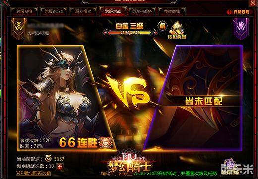 跨服对战玩法是塔人《奇迹重生:梦幻骑士》跨服活动最受欢迎的一个。每一个热爱战斗,每一个渴望荣耀的玩家都不会错过任何一次参加跨服对战的机会。因为只有在这里,你才能和真正的顶尖高手过招,只有在这里你才能证明自己的最强之名!