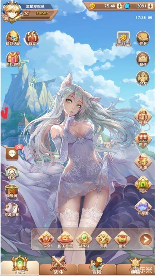 这是我第二天下午5点状态,33万战力,38级月卡党,加入了一个活跃的公会,慢慢玩咯。