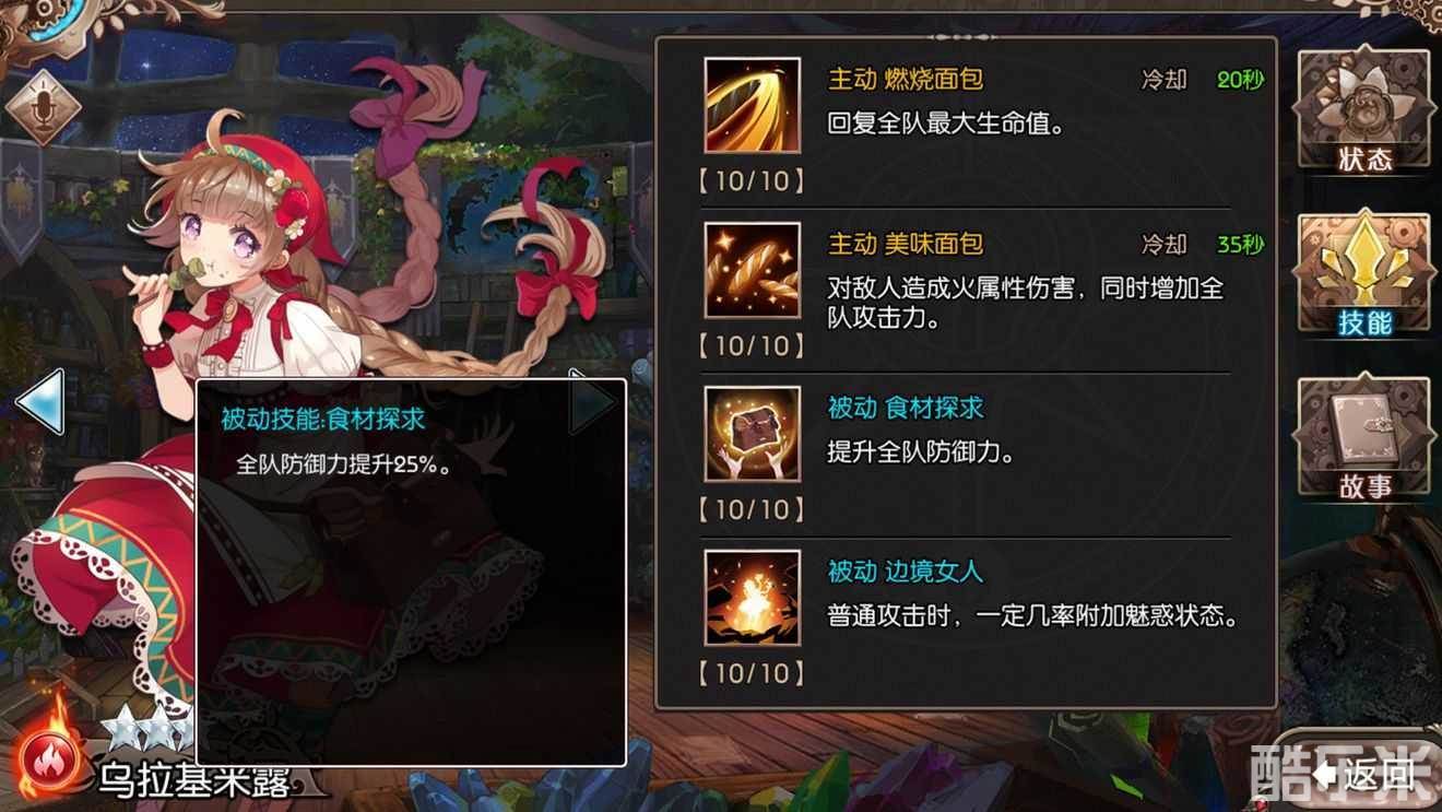 第三个被动技能,提升全队防御,配合奶神格的血量提升,能大幅提高队伍生存力,rp好能抽到莱姆和莲月,组成烧血流可以越级打boss。