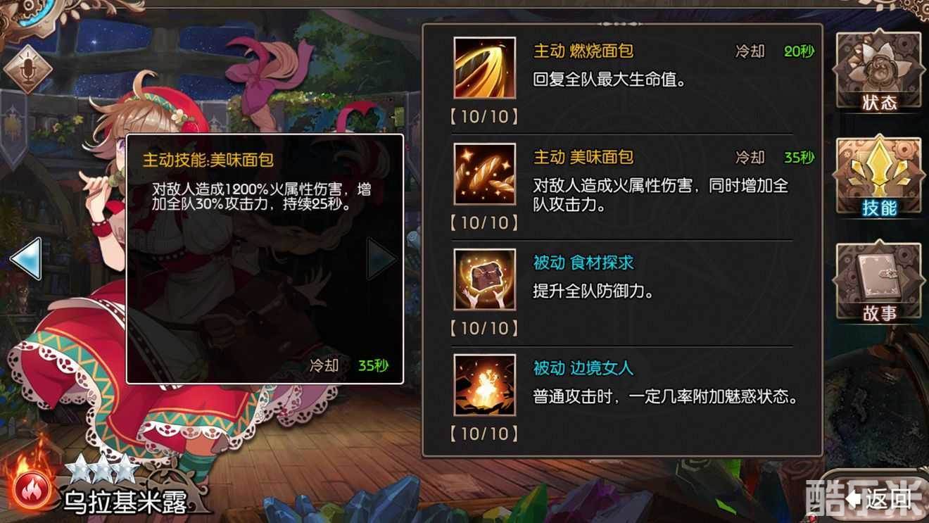 第一个技能20秒CD的固定血量百分比回复,能配合奶妈神格练出提升血量被动,打出成吨的恢复量,在没有4星火奶或5星维拉的情况下比大多数奶妈都好使。