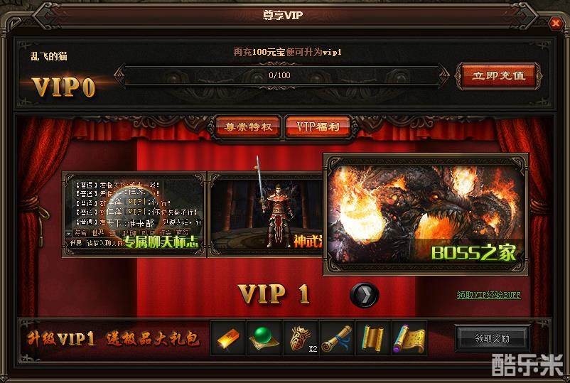 另外,随着VIP升级,可获得极品大礼包。比如升级为VIP1,即送金条、100万经验、高级守卫令牌、副本卷轴、玛雅卷轴、转生神殿卷等礼品。