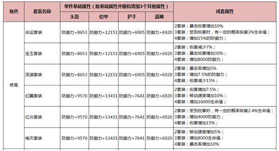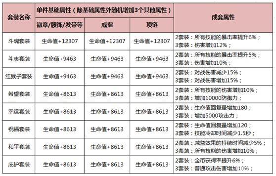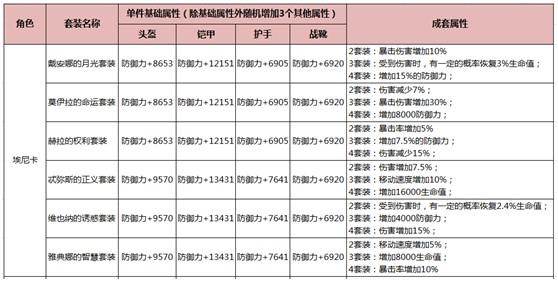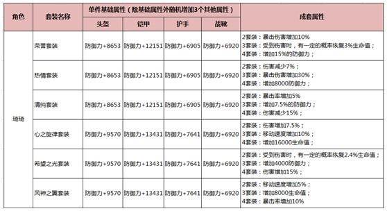 在我守护的一切中饰品套装是通用的,并没有角色的差异,故而小编汇总了饰品套装的套装属性,如下表: