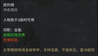 虎豹骑因为抗远程伤害能力强(但是也扛不住箭塔),对于骑兵的最大要务:冲击敌人后排的远程部队而言,毫无疑问是最为强大的助力,缺点是高昂的招募和维护费用。尤其是中前期的攻城战中如果损耗过多是很难以及时补充战力的。