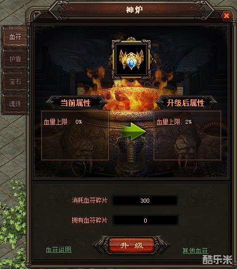 低等级血符可以通过消耗血符碎片进行升级,成为更高一级的血符,带来更多的生命值加成。拥有高等级血符之后,一向脆皮的法师也能站撸BOSS啦!