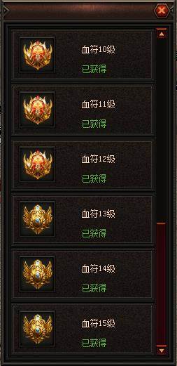 血符分为15级,等级越高的血符能够提供给角色更高的生命值加成,让你在打BOSS、PK当中不在为血少而烦恼。