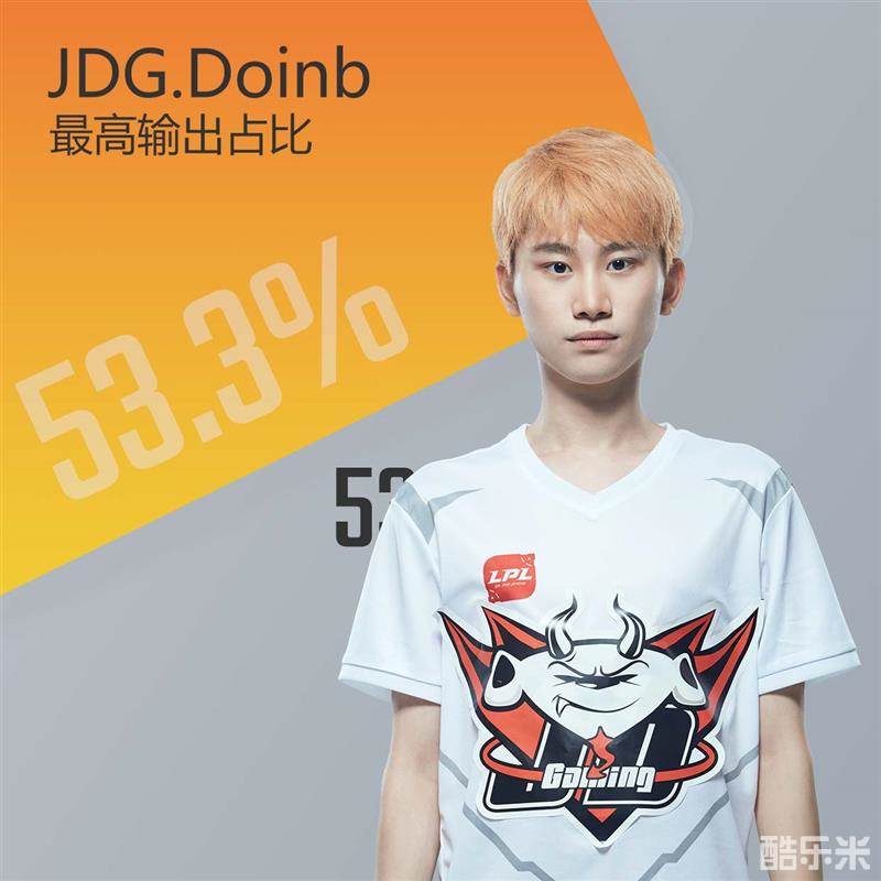场均最高输出占比:JDG.Doinb 41.0%(共5局,唯一突破40%的选手)