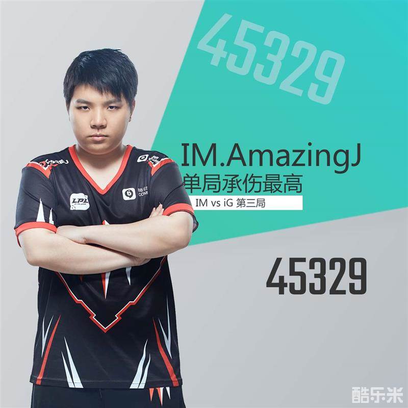 输出承伤比均突破25%:IM.AmazingJ(共2局,输出比28.0,承伤比33.1%,两项均排名上单第一)