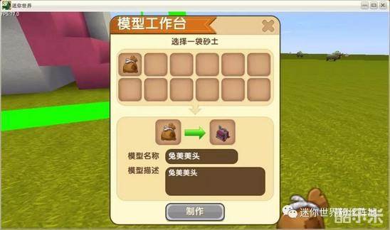 然后向模型工作台倒入一袋砂土,制作已经做好的部件方块