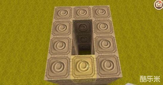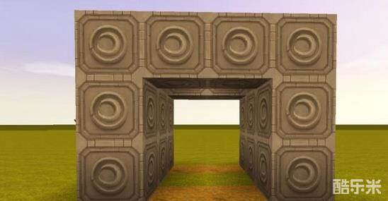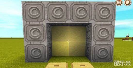 首先在地面建一个门框,高三格,宽三格,长四格中空(如图),门框材料可以任意选择。