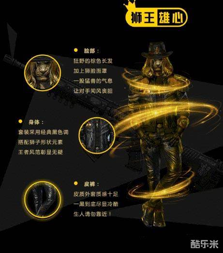 与之相匹配的是M416的枪械皮肤“黄金狮王”!通体土豪金配色和黑色皮革包裹的枪身,加以腰带、流苏、绳索、徽章的点缀,让你霸气外露摆出强者姿态!