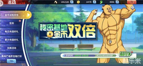 活动期间内,挑战或扫荡【秘密基地】-【生存训练】可获得双倍灵魂药水。