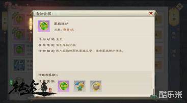 在家族维护活动中,少侠可能需要帮忙给家族的鸡喂饲料;驱赶突如其来的盗贼;或者陪家族吉祥物旺财玩耍等等。在一番忙碌后,少侠可获得高额经验及培训令、押镖令等奖励。既维护了家族,又增强了自身实力,可谓一举两得。